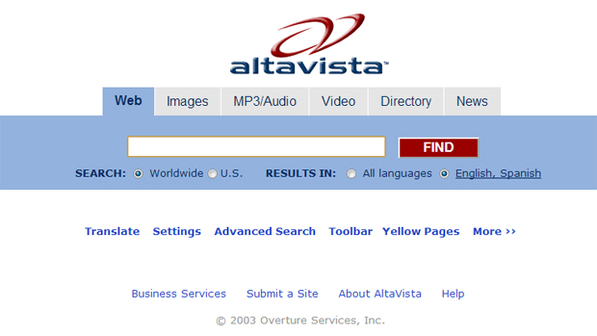 O AltaVista, lançado em 1995, foi um dos primeiros buscadores da internet e, antes do domínio do Google, um dos mais utilizados, pertencendo ao Yahoo! somente a partir de 2003. O buscador foi primeiro do gênero a oferecer recursos de pesquisa em vários idiomas e a criar filtros por imagens, vídeos e textos. Oficialmente desativado em 08 de julho, quem tentar acessar o AltaVista será redirecionado ao site de buscas da empresa.