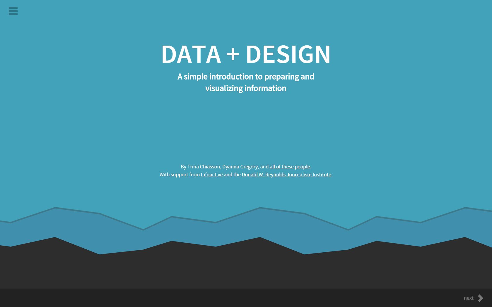 O Infoactive, ferramenta para o desenvolvimento de infográficos interativos, disponibiliza em seu site o livro DATA+DESIGN, para apresentar informações sobre a preparação e visualização de dados.