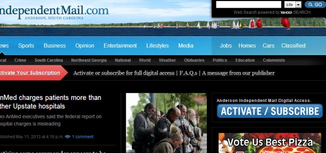 O diário norte-americano Independent Mail, da Carolina do Sul, está obrigando os próprios jornalistas a pagar a assinatura (paywall) para poder ter acesso ao conteúdo na internet. A denúncia foi feita por um redator do periódico para o blogueiro Jim Romenesko. Para ter acesso ao conteúdo é necessário desembolsar 60 dólares. Dias antes, outro caso